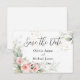Elegantes rosas cor-de-rosa em aquarela em um fundo pastel de aquarela rosa com verdes de eucalipto misturados. Simplesmente lindo. Uma fonte fancy foi usada para realçar a elegância deste design deste cartão “Salve a Data”. 100% de satisfação do cliente todos os dias na “Zazzle”.