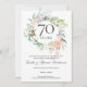 Com uma delicada grinalda floral em aquarela, este convite de save the date de aniversário de casamento de 70 anos chic e botânico pode ser personalizado com as suas informações especiais de save the date. O verso apresenta uma grinalda floral correspondente emoldurando as datas do seu aniversário. Concebido por Thisisnotme©