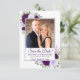 Este belo casamento floral com chic boho salve os cartões de data que mostram sua foto cercada por rosas de aquarelas pintadas manualmente e flores em tons de roxo, lavanda e ameixa. A legenda diz: Salve a Data em letras elegantes de script. Há espaço para seus nomes, a data do casamento e o local abaixo. O dorso é uma cor roxa marmoreada profunda com um aglomerado das mesmas flores. Uma maneira maravilhosa de deixar seus amigos e família saberem sobre seu próximo casamento.