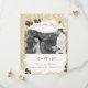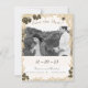 Design apresenta a imagem de rosas sepia/ouro e folhagem que enquadra sua foto como imagem principal. O cabeçalho personalizável é exibido em uma fonte elegante Nupcial como um arco acima da foto que você fornece. A data do casamento é exibida em grandes números logo abaixo da foto. Texto personalizável claro e fácil de ler da cidade, estado e data é exibido em uma fonte elegante e colorida em café contra uma faixa branca. Nomes de noiva e noivo são apresentados em uma fonte Nupcial da mesma cor. A cor de fundo é conhecida como "Bridal Heath" e é uma sombra muito pálida de castanho. O design inverso mostra a fuselagem do ornamentado/ouro, criando uma impressionante impressão em todos os que a veem. Projetado para coordenar com a suíte de casamento "Rosas Ornamentados Católicos".