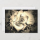 Design apresenta a sua foto no canto superior direito. Exemplo de texto diz: "Salve a data!" Os nomes dos casais, a data, a cidade e o estado aparecem no canto inferior esquerdo sobre um suporte preto. Imagem aproximada de uma rosa de sepia em ambos os lados. Todo texto é personalizável. Projetado para coordenar com a suíte de casamento de Rosas Elegantes.