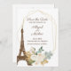 Um belo casamento Salve o modelo de Data com um design de inspiração francesa de um quadro geométrico dourado, rosas e verde, e a Torre Eiffel. Este modelo pode ser atualizado facilmente com suas informações. Se você precisar de assistência com sua personalização, itens adicionais para sua festa ou outra celebração, sinta-se à vontade para entrar em contato comigo usando o botão de mensagem.