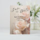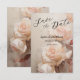 Rosas de Verão Suaves, cartão de Save The Date de casamento elegante, projetado com rosas cor-de-rosa suaves sobre um fundo creme e taupe. O texto inclui os primeiros nomes dos noivos e a data do casamento, com detalhes a seguir. Para personalizar, basta inserir seus nomes e data do casamento em nosso modelo fácil, substituindo o texto de exemplo. Certifique-se de ver a coleção completa de Rosas de Verão Suaves e Casamento Elegante para cartões e acessórios correspondentes.