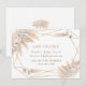 Design único e elegante com orquídea branca aquarela, rosas rosa e bege, folhas secas de pampas do deserto, moldura poligonal dourada falsa, iniciais no verso buquês de flores e grama de pampas em um fundo branco. Use a ferramenta Personalizar para adicionar suas informações. Para itens correspondentes, visite minha Coleção Floral de Grama de Pampas.