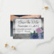 Rosas, madeira de celeiro rústica. Seu encantador casamento no campo aguarda! Celebre aquele dia especial com a elegância eterno do estilo de fazenda! Este design apresenta textura de madeira meteorizada foto-realística e ilustrações de safra em uma paleta de cores dramáticas e de tendências. Fácil personalização! Basta substituir o texto modelo com seus próprios detalhes. Clique no botão "Personalizar" para alterar as fontes, adicionar texto ou mover e redimensionar o texto conforme necessário. Bônus nas costas! Esta placa Save The Date apresenta um modelo personalizado no verso para servir como uma fotografia de manutenção para familiares e amigos. Basta substituir a foto de estoque pela sua própria imagem de alta resolução e depois escalá-la ou movê-la para a posição. Se você preferir nenhuma foto, simplesmente exclua a camada de fotos, e o padrão de madeira de coordenação aparecerá. Se você quiser um fundo totalmente vazio sem a fotografia ou a madeira (para adicionar mais texto, por exemplo), apenas exclua a camada de madeira.