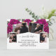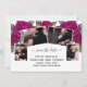 Belo cartão Guarde a data com rosas rosa quente e folha de ouro. Tipografia de script. Personalize com quatro fotos especiais. Um pequeno rosa gráfico de coordenação atrás.