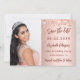 Um moderno e elegante Salve a Data para uma festa de aniversário 18 (ou qualquer idade). fundo rosa de gradiente dourado, decorado com confete rosa dourado. Personalize e adicione uma foto, data e nome. O texto: Salvar a Data é gravado com um script de estilo com letra de tendência.