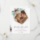 Este cartão "Save Our New Date" (Salve nossa nova data) elegante e moderno é a maneira perfeita de informar aos convidados uma mudança nos planos do seu casamento. Ele apresenta uma foto personalizável do casal emoldurada por um contorno geométrico dourado e sofisticado, adornado com um belo arranjo floral em aquarela em tons de borgonha, roxo e marfim. O design usa uma combinação de letras cursivas elegantes e fontes clássicas para destacar os nomes e a nova data do casamento. Este cartão oferece uma maneira pessoal e sofisticada de comunicar uma atualização, misturando flores românticas com uma estética geométrica contemporânea. É ideal para um tema de casamento de jardim, rústico ou sofisticado.