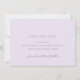 Cartões de aviso de data de casamento roxo claro com acentos de caligrafia.