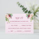 O elegante design floral apresenta roseiras cor-de-rosa e brancas, borrifadas de ameixas profundas, roseiras cor-de-rosa e roseiras brancas, folhas e flores silvestres que se enrolam sobre os cantos. Este RSVP coordena-se com a Romântica Burgundy Plum, a Suíte de Casamento Rosa Blush, localizada no meu compro.