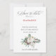 O verde do pinheiro com rosas brancas faz um elegante cartão de detalhes florais. Mais acentuado com bagas sutis e cones de pinho. A caligrafia aproveita a design para separá-la de forma simples, mas eficaz. É feminina e na moda, com uma paleta editada de branco, cor de rosa profundo e vermelho suave.