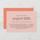 Faça uma declaração de elegância subestimada com este simples e clássico cartão de resposta de assento de casamento baseado em texto, em cor-de-rosa macia rosa, com sotaque coral. Use a opção de personalização para mudar toda a cor para se adequar ao seu tema de casamento. Personalize todo o texto deste cartão de inserção de RSVP on-line e ajude a direcionar seu convidado para o site do casamento para obter informações adicionais enquanto salva algumas árvores e dinheiro no correio.