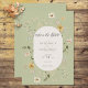 Este casamento, exceto o cartão de data, apresenta um delicado fundo verde sábio, que exumenta um senso de sofisticação e riqueza. A matiz verde macia cria um pano de fundo cativante que dá o tom para uma celebração memorável. No centro do convite, destaca-se um quadro de texto em forma oval, que fornece um ponto focal gracioso. O quadro é lindamente trabalhado, exuando um sentido de refinamento e elegância. Sua forma adiciona um toque de singularidade, captando a atenção dos receptores. Ao redor do quadro de texto, flores silvestres de cor d'água delicadas e rústicas são arranjadas artificialmente. Estas florescências charmosas, representadas em matizes suaves, evocam uma sensação de beleza natural e tranquilidade. A técnica de aquarela lhes dá uma aparência suave e etérea, aprimorando o ambiente romântico geral do convite. A combinação do fundo verde sábio, o quadro de texto oval, e as flores silvestres de cor d'água rústicas cria um convite de casamento visualmente espantoso que exumenta elegância e um toque de capricho. Ela dá palco a uma celebração romântica cheia de beleza natural e momentos corajosos. Criada pela "Simply Farmhouse Press", é parte da suíte de casamento Rustic Wildflower Frame Sage Green.