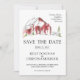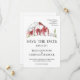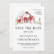 Este cartão de datilografia apresenta uma bela imagem vermelha do celeiro de cor d'água que é perfeita para um casamento rústico ou vintage.