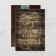Este casamento vintage chic salva a data apresenta um fundo de cadeado de madeira rústica com uma silhueta de jarro mason. Perfeito para um casamento vintage, rústico ou country. Inclua sua própria imagem de noivado no verso para compartilhar com todos os seus amigos.