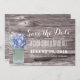 Cartões salve a data de madeira Rustic Blue Hydrangea Mason Jar.