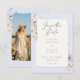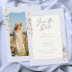 This dusty blue floral wedding photo save the date card features a soft pastel background, delicate wildflowers, and a handmade torn edge paper look. Perfect for romantic garden weddings, it offers an elegant, modern style with timeless charm for couples seeking a refined wedding design. Created by Simply Farmhouse Press.