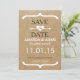 Reserve A Data Rustic Burlap Salve o Cartão-Postal de Data