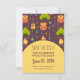 Reunião familiar salve o cartão de data com um padrão temático divertido. Colocado sobre um fundo castanho avermelhado. Elementos no padrão incluem uma fogueira, uma tenda, uma guitarra, uma pá e mochila.