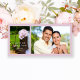Ponha o tom para o seu próximo país rural ou casamento com o charmoso Rustic Pink Daisies e Cowboy Boots Country Wedding Save the Date Cartão com fotos. Este casal casual, porém clássico, personalizado ocidental, mantém a data em que o cartões de fotos de anúncio apresenta uma fotografia floral tênue de botas de cowboy de couro castanho, um buquê de flores de margarida de rosa claro e um véu branco de brasa em madeira de celeiro com uma roda de vagão velha e um fundo verde natural desfocado.