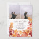 Anuncie seu dia especial com este belo boho rusticado, guarde o cartão de encontro. O design apresenta flores de outono pintadas manualmente em tons vibrantes de laranja, vermelho e ouro, moldando perfeitamente suas fotos de noivado. A letra elegante do roteiro adiciona um toque de sofisticação, fazer ideal para casais planejando um casamento romântico e rústico. Este modelo personalizável permite que você adicione seus detalhes pessoais, garantindo que eles correspondam ao seu estilo único de casamento.Adicione uma foto extra no verso!