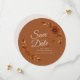 This charming, rustic, yet elegant fall wedding save-the-date card showcases beautiful bloom of garden mum and foliage in golden brown and beige tones on a soft off-white and toffee brown background. Romantic falling autumn leaves evoke feelings of cozy, peaceful love that stands the test of time. The wording can be customized to fit your preferences.