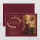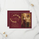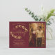 This beautiful wedding Save the Date card features a rustic burgundy and gold colored design with modern script lettering and a sprigs of hand painted golden watercolor leaves, vines, or foliage. There is space for your photo, the couple's name & wedding location. Elegant, stylish, and chic, this card is a great way to let your friends and family know to save the date for your special day.