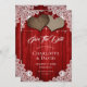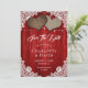 Complemente sua festa de casamento vermelha romântica com este belo casamento burlap e lace, salve os cartões de data com dois corações burlap em um fundo de madeira vermelha decorado com luzes de cordas e rendas florais brancas. Itens correspondentes disponíveis.