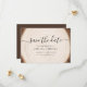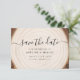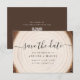 Announce your big day with this rustic save the date card featuring a natural wood ring background, modern calligraphy script, and clean serif names and date. The front highlights your wedding details over a soft tree-slice design, while the back showcases your wedding website and a scannable QR code so guests can quickly access all the information they need. This earthy yet elegant card is perfect for woodland, barn, outdoor, and boho weddings, pairing beautifully with wood slice décor, greenery, and neutral stationery. Easily customize the names, date, location, URL, and QR code on Zazzle to create a save the date that matches your full rustic invitation suit
