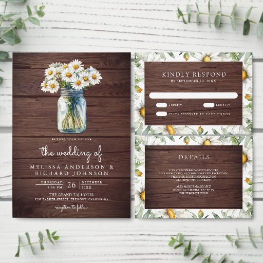Daisies Floral Mason Jar Wood Wedding SuiteCriado por Shabbir D