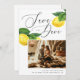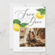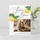 Anuncie seu dia especial em estilo com este limão Salve o cartão Data, misturando encanto rústico com elegância moderna. A mão pintada com limões aquosos e folhas verdes esmagadas trazem o espírito fresco de um pomar mediterrânico, enquanto o grande roteiro "Salvar a Data" adiciona um toque romântico e eterno. Perfeito para casais que alojam um casamento de verão, os citros inspiraram uma celebração, um casamento de destino da Costa Amalfi ou uma recepção rustica de vinhedos. Este cartão define o tom de um evento alegre cercado pela natureza. A combinação de ilustrações frutas orgânicas e tipografia moderna torna-a elegante e convidativa. Quer você esteja planejando uma cerimônia à beira-mar, uma reunião no pomar do campo, ou uma festa no jardim vivo, esses cítricos Salvem a Data capturam a essência do calor, romance e celebração. Disponível como cartão impresso e download digital.