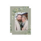 Uma imagem de casamento moderna, russa, do sábio Eucalyptus Greenery Foto Salve a data com sua foto de noivado e nosso adorável verde-eucalipto da Califórnia (ocidental), verde-víbora botânica moderno e tipografia moderna num cenário verde-oliva perfeito. Elegantemente moderno, mas eterno e clássico. Essa design combina os elementos naturais do eucalipto e da mariposa com a tipografia moderna. Perfeito para um casamento rústico ou romântico. Fácil de personalizar com suas informações para uma data moderna e romântica. Entre em contato conosco em cedarandstring@gmail.com se precisar de assistência com o design ou produtos correspondentes.