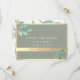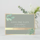 Moderno salve o cartão de data com elegante verde-aquarela de eucalipto, fundo verde-sábio neutro, sotaques de folha de ouro falsos e roteiro romântico. Perfeito para casamentos botânicos, rústicos ou de vassoura.