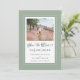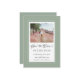 Sage Green Save The Date Noivado O design do cartão de casamento Photo apresenta uma bela borda chic em verde sage que inclui uma elegante borda branca petite. A caligrafia e a escrita são cinzas de carvão sobre fundo branco. Um modelo moderno para data e ano complementa o design único de caligrafia. [NOTA: a exibição da data de casamento, conforme mostrado, usa o bar vertical ou a linha que pode ser encontrada acima do \ em um teclado ou no seu dispositivo inteligente com os caracteres especiais. Você também pode personalizar com qualquer outro personagem de sua escolha.] Personalize com sua foto de noivado favorita para anunciar seu grande dia! Outros designs disponíveis nesta suíte. (Para melhor posicionamento da sua imagem, use uma ferramenta de edição de fotos para centralizar e cortar ANTES de carregar no site do Zazzle.) Envie um e-mail para invitationsuites@gmail.com com perguntas ou solicitações personalizadas.