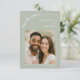 Announce your special day in style with this modern Sage Green colored Save the Date card. Featuring your favorite photo framed by a minimalist ivory line border, it perfectly blends timeless elegance with a personal touch. The handwritten script adds a romantic detail, while the clean layout keeps the design contemporary and easy to customize.