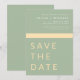 Elegante Sage Green e Cartões salve a data Dourados. Os Cartões salve a data contêm uma moderna tipografia cursiva escrita escrita escrita escrita escrita escrita escrita escrita que é elegante, simples e moderna a ser usada depois da simples celebração do dia de casamento minimalista.