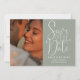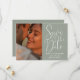 Este casamento elegante com guião verde salva o convite de data pode ser personalizado com suas 2 fotos especiais e informações do dia do casamento. Projetado por Thisnotme©