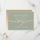 Trendy, elegante e esplêndido Casamento Verde Salve o Convite de Data com simples roteiro de caligrafia e coração de corda dourada.