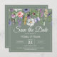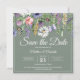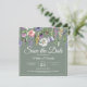 O casamento de sábio verde-boho elegante salve a data com flores silvestres. Personalize-o com um código QR na parte de trás que os seus convidados podem digitalizar para visitar facilmente o seu site de casamento para encontrar mais informações.