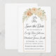 Cartão elegante de save the date floral boho com flores de aquarela e monograma de letra — perfeito para anunciar seu casamento em estilo atemporal.