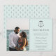 Este Anúncio de Salvamento de Data de Foto Monograma Náutico vem com um design de texto simples, uma âncora náutica simples para os monogramas dos noivos em uma caixa moderna delineada esperando pela sua foto e detalhes do casamento para personalizar. Cores adicionais disponíveis com este design. Perfeito para o casal com tema de casamento costeiro.