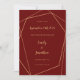 Um design elegante com uma estrutura geométrica de ouro e texto de ouro facilmente personalizado em fundo burguês com fundo de ouro coordenado na inversa. Personalize facilmente o texto e você pode alterar as cores do plano de fundo e do texto para corresponder ao tema do casamento, se desejar, por meio da opção Clique para personalizar mais. Se precisar de ajuda com esta design, por favor, me mande mensagem.