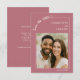 Anuncie seu dia especial com estilo neste cartão moderno de Save the Date na cor dourado rosa. Com sua foto favorita em destaque, emoldurada por uma borda minimalista em marfim, ele combina perfeitamente elegância atemporal com um toque pessoal. A caligrafia manuscrita adiciona um detalhe romântico, enquanto o layout limpo mantém o design contemporâneo e fácil de personalizar.