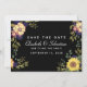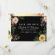 Convite de Casamento Floral Temperamental Preto e Dourado para Salvar a Data do Outono com Girassóis, Flores de Aquarela e Folhagens.
