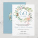 Este convite de save the date de aniversário de casamento de 60 anos botânico elegante pode ser personalizado com os detalhes da sua data especial. O verso apresenta uma grinalda floral correspondente emoldurando as datas do aniversário em texto branco elegante sobre um fundo azul diamante. Concebido por Thisisnotme©