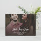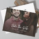 Cartão de salvar a data do casamento com foto elegante. O cartão apresenta um texto "Salvar a Data" em caligrafia, que pode ser alterado para um tipo de letra de sua escolha em nossa ferramenta de design. Adicione sua foto favorita usando o botão "Personalizar".