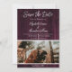 Crie um anúncio único com este Salvar a Data com Foto Rústica Magenta. O anúncio apresenta um fundo de madeira rústica e um local para adicionar sua própria foto com um design de texto elegante. Cores adicionais disponíveis com este design.