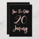 Salvar a Data da Festa de Janeiro Preto e Rosa Dourado Script Cartão de Salvar a Data Elegante para Casamento, Festa de Aniversário ou Seu Evento de Janeiro.