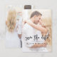 Transparência cobrindo foto personalizada e customizada na frente e no verso de convites de Save the Date de casamento elegantes e modernos - inclui uma tipografia de roteiro bonita e elegante para a celebração especial do dia do casamento.
