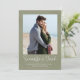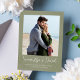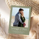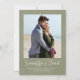 Esta adorável design apresenta um cartão com fotos salva-vidas, perfeito para o destino, casamentos, com um estilo simples, elegante e elegante de modelo fotográfico, uma única, verde, palma deixa design perfeito para casamentos na praia